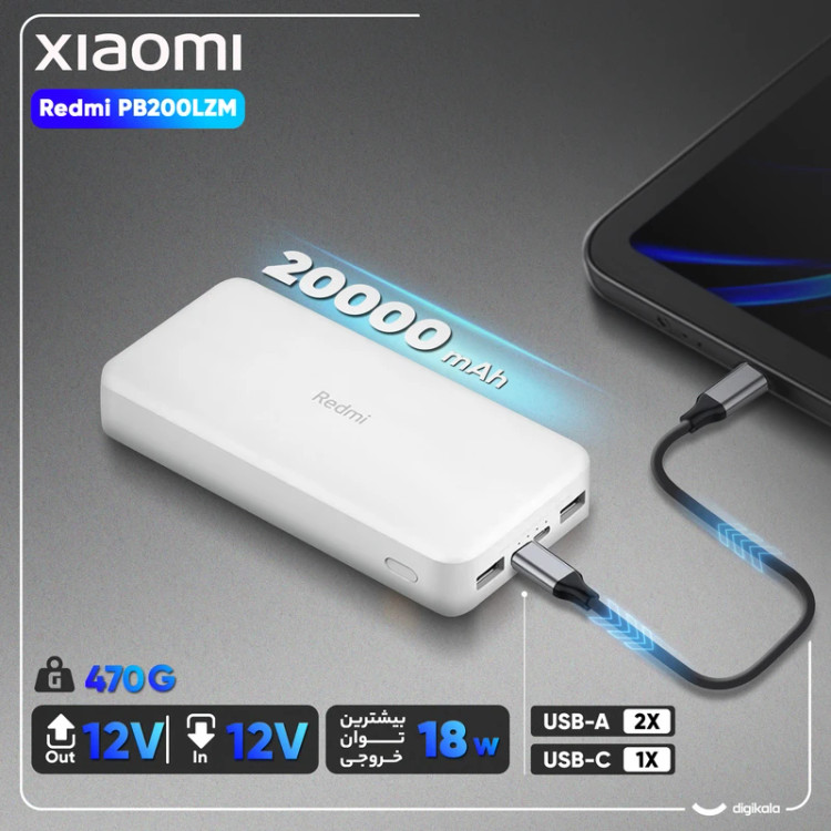 پاوربانک شیائومی اصل Redmi PB200LZM ظرفیت 20000 میلی آمپر + گارانتی