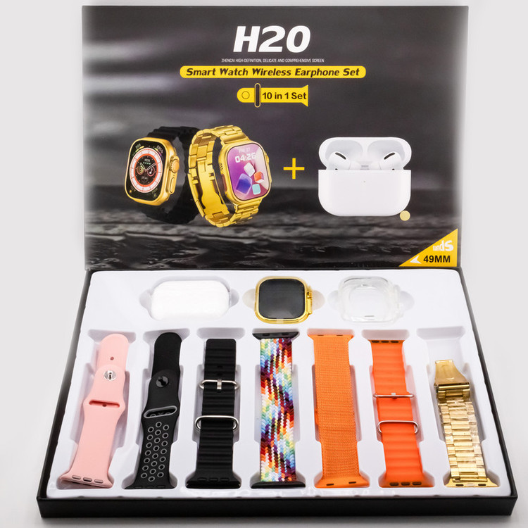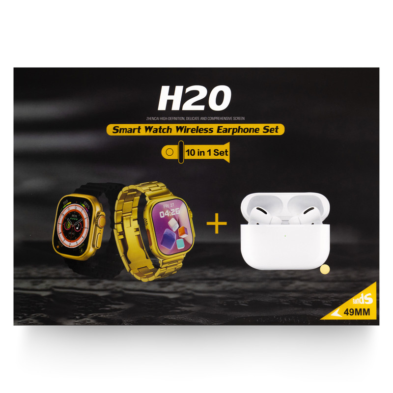 ساعت هوشمند مدل H20 ULTRA 49mm دارای صفحه نمایش رنگی و لمسی، کنترل موسیقی (Music Player)، کنترل سطح اکسیژن خون، قابلیت مکالمه از طریق بلوتوث بند استیل به همراه هندزفری