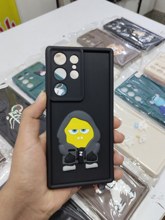 قاب گوشی Galaxy S23 Ultra سامسونگ طرح سیلیکونی Solid عروسکی فانتزی برجسته سه بعدی محافظ لنزدار طرح باب اسفنجی مشکی