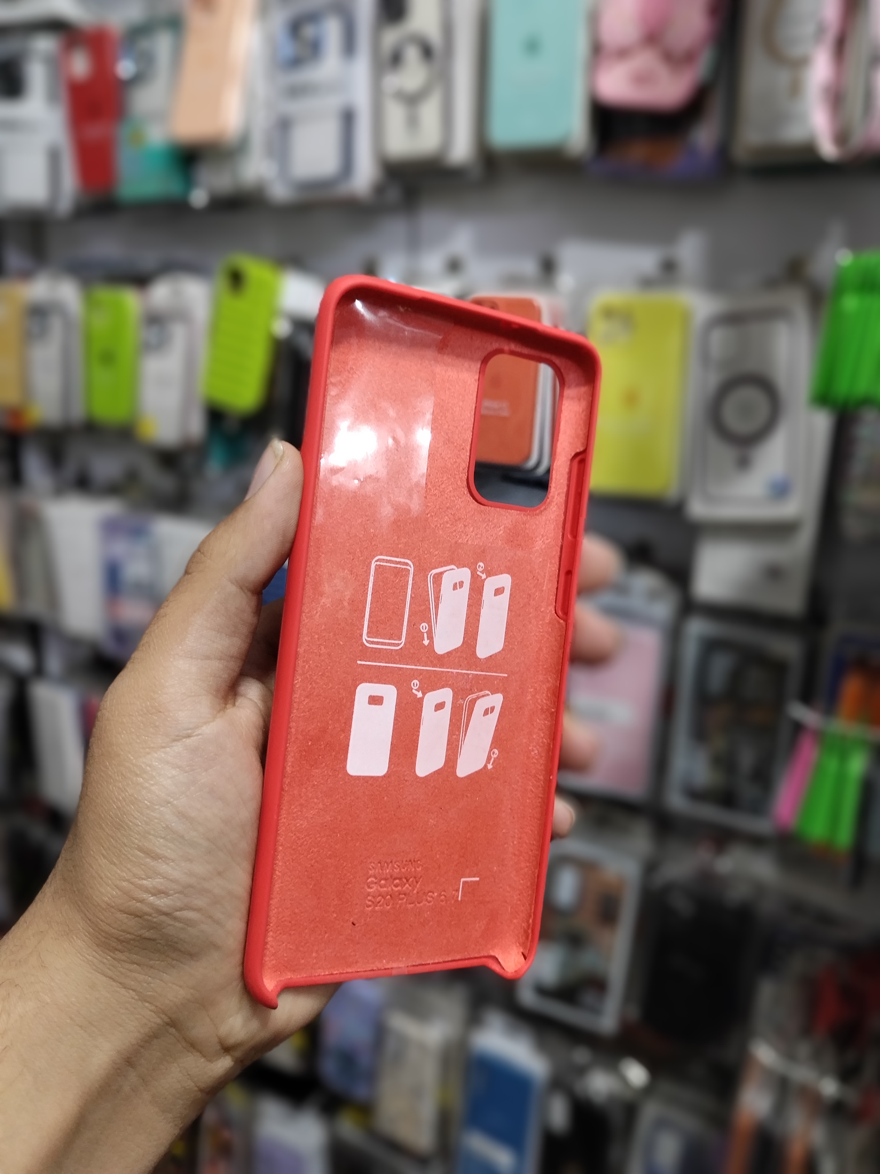 قاب کاور گوشی Galaxy S20 Plus سامسونگ سیلیکونی پاک کنی اورجینال داخل پارچه ای قرمز