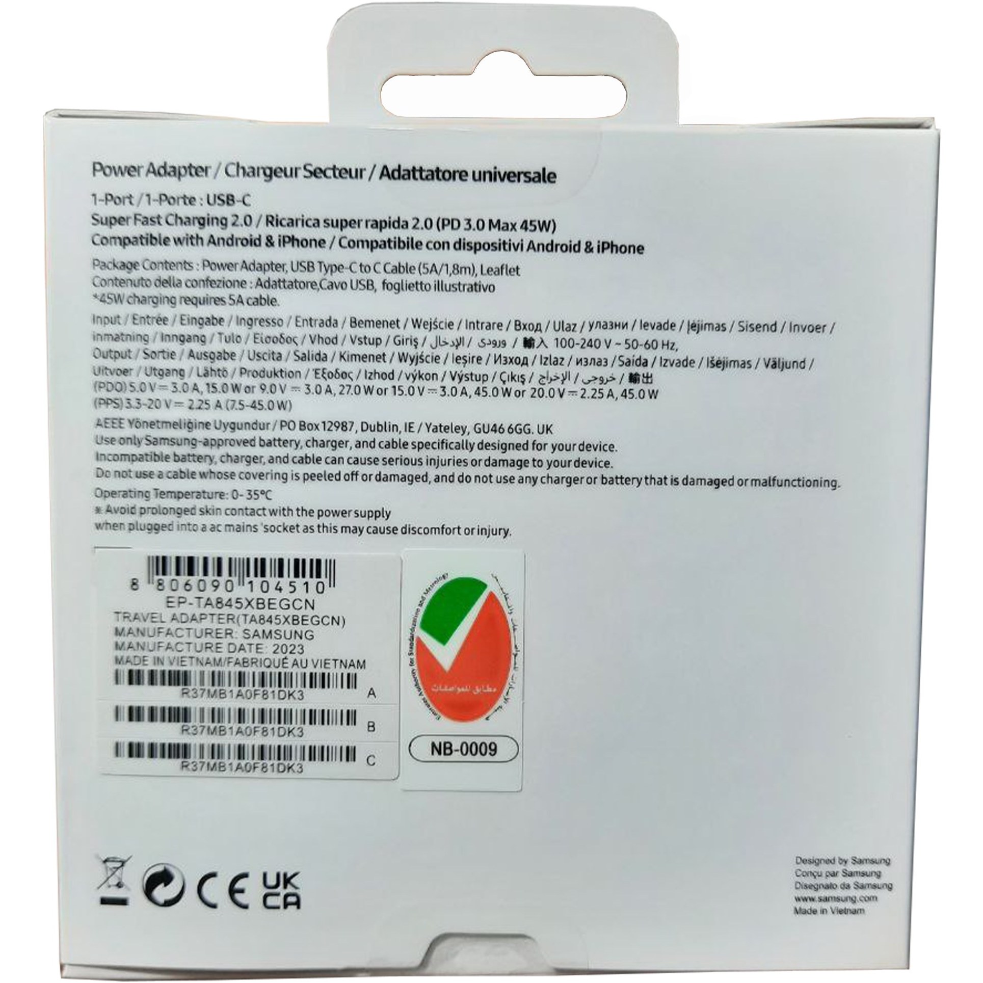 نوع درگاه خروجی: USB-C, • حداکثر شدت جریان خروجی: ۵ آمپر, • کالای اصلی - ساخت ویتنام