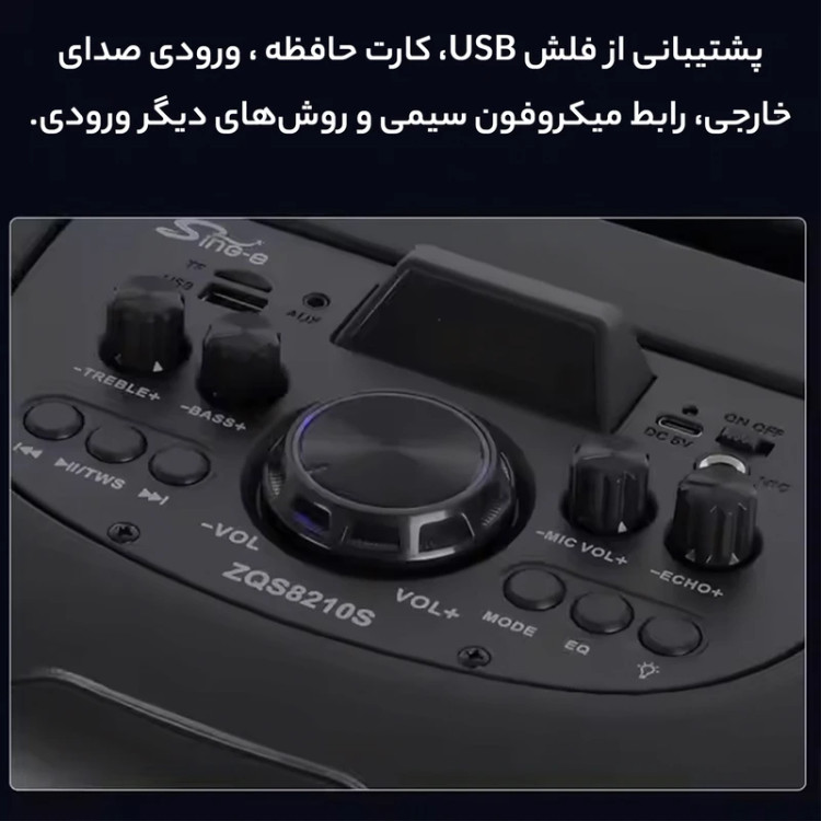 نوع اسپیکر (بلندگو)اسپیکر چمدانی ابعاد780x340x340 میلیمتر وزن4000 گرم وزن هر بلندگو (ستلایت)4000 گرم جنس بدنه پلاستیک